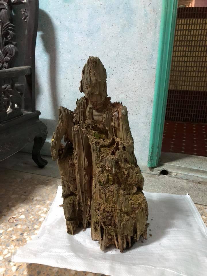 這名網友在臉書社團「爆廢公社」PO文說,某天前往爺爺以前種菜的地方整理這些枯木,結果其中一塊木頭已經遭到白蟻啃食,已經看不出原本的面貌,然而一轉到正面,卻發現這些白蟻超誇張,竟然直接把枯木啃出一尊「濟公活佛」的模樣!