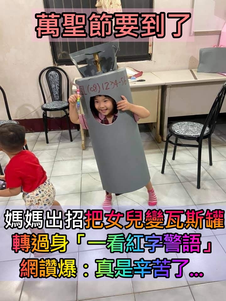超Local萬聖裝扮!神手媽媽「把女兒變胖胖瓦斯罐」 轉過身「超爆笑紅字警語」網笑翻:媽媽辛苦了 時尚BOBO 2025-10-27 檢舉 分享到 Facebook (來源:爆廢公社公開版)還有媽媽把小孩扮成處處可見的電線桿,上面還打趣地貼著「凶宅巨城旁每坪16.8萬」的傳單,讓大家笑說:「想起以前的超級變變變」、「萬聖節就應該這樣鬧阿,比扮帥扮美好玩多了」、「跪求兒子心理陰影面積」 Advertisements (來源:爆廢公社公開版)小編覺得扮這些比扮成超級英雄或公主還要有創意多啦~今年爸媽也想好要把小孩扮成什麼樣子了嗎?來源:爆廢公社公開版 Advertisements 回首頁 2/2 Advertisements 猜你會喜歡 小男孩萬聖節「扮成最敬愛的英雄」沒人認出他扮誰!角色曝光「天下家長秒被感動」:真的是英雄 騎車進隧道!他驚見「長髮女鬼站路邊」嚇傻摔車 跑媽祖廟收驚「女鬼被揪出」慘了 世紀合體!萬聖節街上「麥當勞叔叔+肯德基爺爺」同框現身 手上小牌子「讓路人都笑翻」 編輯精選推薦 More + 罕見大尺度!45歲韓瑜「甜牽老公走紅毯」美到發光 雪白嫩肌「辣開深V到胸前」好身材包不住❤️ 臨時找不到保母!女學生硬著頭皮「帶寶寶去大學上課」 教授霸氣伸手「寶寶我來抱吧」畫面超溫馨 兒子是清華碩士!遊手好閒「17年不工作」被我趕出家門 收拾房間時「發現保險櫃」打開後瞬間語塞 22歲愛女病逝!資深男星「走不出喪女痛」留白長髮現身 掛骨灰項鍊「代女做1事」惹淚 離婚11年!洪榮宏愛女結婚「終破冰前妻」 「2爸爸牽她進場」催淚畫面曝 台灣最悲情夜市!佔地6000坪「連假卻淪空城」 在地人曝3原因:「比墾丁大街還慘」 相差18歲!58歲康康自爆「與老婆分房12年」驚呆眾人 提到沈玉琳「坦言罹同1病」:必須警惕... 晚年兒孫滿堂!73歲影壇大哥「拄拐杖現身」腳步蹣跚 兒子「全程攙扶不喊累」網羨:又帥又孝順 大咖男星妹妹出嫁!全身金飾「曾獲近千萬豪宅」嫁妝豐厚 兄妹長超像「一看媽媽懂了」:基因強大 蔡小虎接噩耗「驅車360里路」南下見她最後一面 「堅持續命3個月」慘痛代價曝光 甜美酷帥都可以!超萌小女孩「日常百變造型」背影超迷人 一轉身「超療癒甜美臉蛋」大家秒融化❤️ 85歲失智父身亡!林葉亭突宣布「皈依佛門」 遇大師「開示一番話」忍不住淚崩 無預警宣布喜訊!台語歌王「首曝光帥兒」有顏又有才 「考一次就上」網讚:虎父無犬子 被封女吸血鬼! 她改造身體49處「整前模樣曝光」 網嘆:原本很清純.... 24歲兒失明!于美人爆「他在飯店掃廁所」維生 不盼紅包只求「別再花我的錢」 曾比江蕙紅!台語歌后「爆未婚生子」遭指指點點 「2次手術害癱瘓」72歲近況曝 15歲兒「睡夢中離世」!本土女星「送愛子火化」求做1事 「PO照圓滿了」:媽媽和你永不分開 功德圓滿了!台語歌后「悲曝他離世」享壽95歲 淚喊:去當快樂的神仙吧... 最新/3度中風送醫!資深男星爆離婚「斷50年髮妻」 「砸1億淨身出戶」家族爆紛爭 再婚2年了!43歲李燕突喊「當媽媽實在太辛苦」 認「已經有愛的結晶」:最完美的幸福❤️ 台語歌后慟別摯愛!告別式上認「早隱瞞病情」 道歉哭喊:原諒我簽放棄急救 當年夢中女神!突淡出演藝圈「整個人腫好幾圈」 再現身「竟消風神回春」 晚年隱居台東!68歲名主持失蹤「車內身亡」 伴侶悲曝「死前做1事」:還掛念著我 天使般的臉蛋❤️超萌女娃「圓滾滾大眼睛」宛如洋娃娃 難過哭哭「落淚無辜小神情」讓人好想生女兒 本土劇女星生了!7年前凍卵「終於來到我身邊」 歌手尪嗨喊:生個足球隊