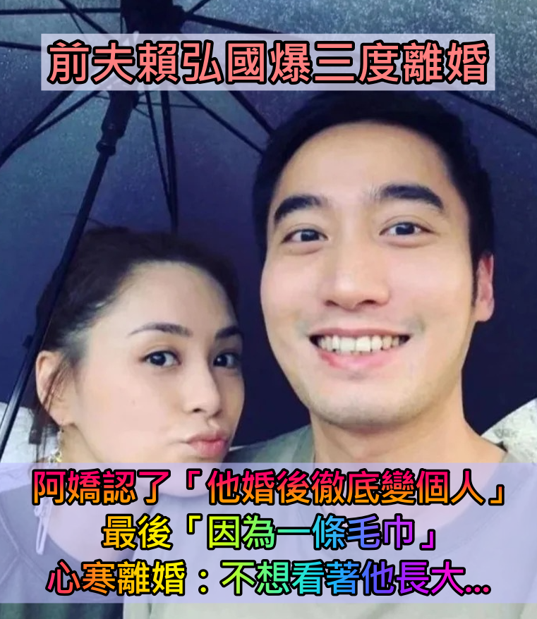 前夫驚傳三度離婚!阿嬌「坦言對愛情要求很低」 最後「因為一條毛巾」心寒離婚:不想看著他長大 口乎口乎 2025-11-05 檢舉 分享到 Facebook 至今依舊單身的阿嬌,也曾在節目中透露,不希望找一個要去照顧他的弟弟,「我不要看著他長大,我不是他媽媽,我不需要去教育他,這責任太大了,太累了,我們沒時間。」如今賴弘國再傳婚變,也讓網友不禁思考,是否他又在婚姻中做出不妥舉動,認為他離模範老公之路還很遠,希望他能夠好好認真對待婚姻,不要再讓另一半陷入無限內耗。來源:sohu Advertisements 回首頁 2/2 Advertisements 編輯精選推薦 More + 趕在40歲前閃婚!八點檔女星「宣布嫁給他」 尪驚人身分曝「媒人是柯叔元」 大咖男星妹妹出嫁!全身金飾「曾獲近千萬豪宅」嫁妝豐厚 兄妹長超像「一看媽媽懂了」:基因強大 晚年隱居台東!68歲名主持失蹤「車內身亡」 伴侶悲曝「死前做1事」:還掛念著我 以為只是小感冒!本土女星悲痛證實「他併發肺炎過世」 一度淚灑現場「後悔同意插管」 旅美多年!資深女星「堅持落葉歸根」回國5天安詳離世 死前「砸600萬做1事」眾人淚目 功德圓滿了!台語歌后「悲曝他離世」享壽95歲 淚喊:去當快樂的神仙吧... 事業風光情路坎坷!77歲女神「渣夫出軌還求復合」 她單身至今「被偶遇驚天一幕」:根本反人類 最新/3度中風送醫!資深男星爆離婚「斷50年髮妻」 「砸1億淨身出戶」家族爆紛爭 65歲男星獨居暴斃!大咖女星放下恩怨「送前夫最後一程」 昔遭動手6年嘆「死者為大」 李英愛輸了!73歲富商尪「超凍齡像40壯年」站一起超登對 「不時甜蜜咬耳朵」網羨慕 22歲愛女病逝!資深男星「走不出喪女痛」留白長髮現身 掛骨灰項鍊「代女做1事」惹淚 婚變尪落跑!單親媽「獨扛千萬債養孩」到處躲黑道 「一開口驚艷眾人」熬成台灣歌后 最新/賈靜雯深夜慟曝「她已離世」 淚PO合照喊:真的好愛你... 台語歌后慟別摯愛!告別式上認「早隱瞞病情」 道歉哭喊:原諒我簽放棄急救 當年親吻1歲嬰!42年後「對方竟成巨星」同框劉德華 「超高顏值如兄弟」粉絲喊:真的差19歲? 台灣大咖病逝「享壽83歲」!周遊告別式痛哭「認婚內出軌」:兒子很恨我... 千萬起家厝賣掉了!張秀卿認手頭緊「為女兒月花20萬」 她超爭氣「進軍美國」成台灣之光 送別亡夫3年!丁強遺孀「不投靠美國兒女」 獨留台灣「76歲拒健康檢查」原因曝光 慶祝17歲愛女畢業!53歲大咖「兒女皆讀名校」年花千萬 驕傲「她獲三大獎」:又美又自信 離婚11年!洪榮宏愛女結婚「終破冰前妻」 「2爸爸牽她進場」催淚畫面曝 演藝工作不做了?60歲綜藝一哥「被目擊改行開公車」 上路1狀況「遭黃鐙輝狂酸」:在家休息就好 昔為父還9000萬債!方季惟罹癌重生「歡慶59歲生日」 不婚不生「發現2顆腫瘤」笑喊:看淡一切 弟成植物人、姊猝逝!玉女歌手「遭前夫設套」騙走娘家房產 「狠斬16年婚姻」近況曝 44歲許維恩罹乳癌!醫示警「3日常用品」易致癌:別碰才能保命 24歲兒失明!于美人爆「他在飯店掃廁所」維生 不盼紅包只求「別再花我的錢」