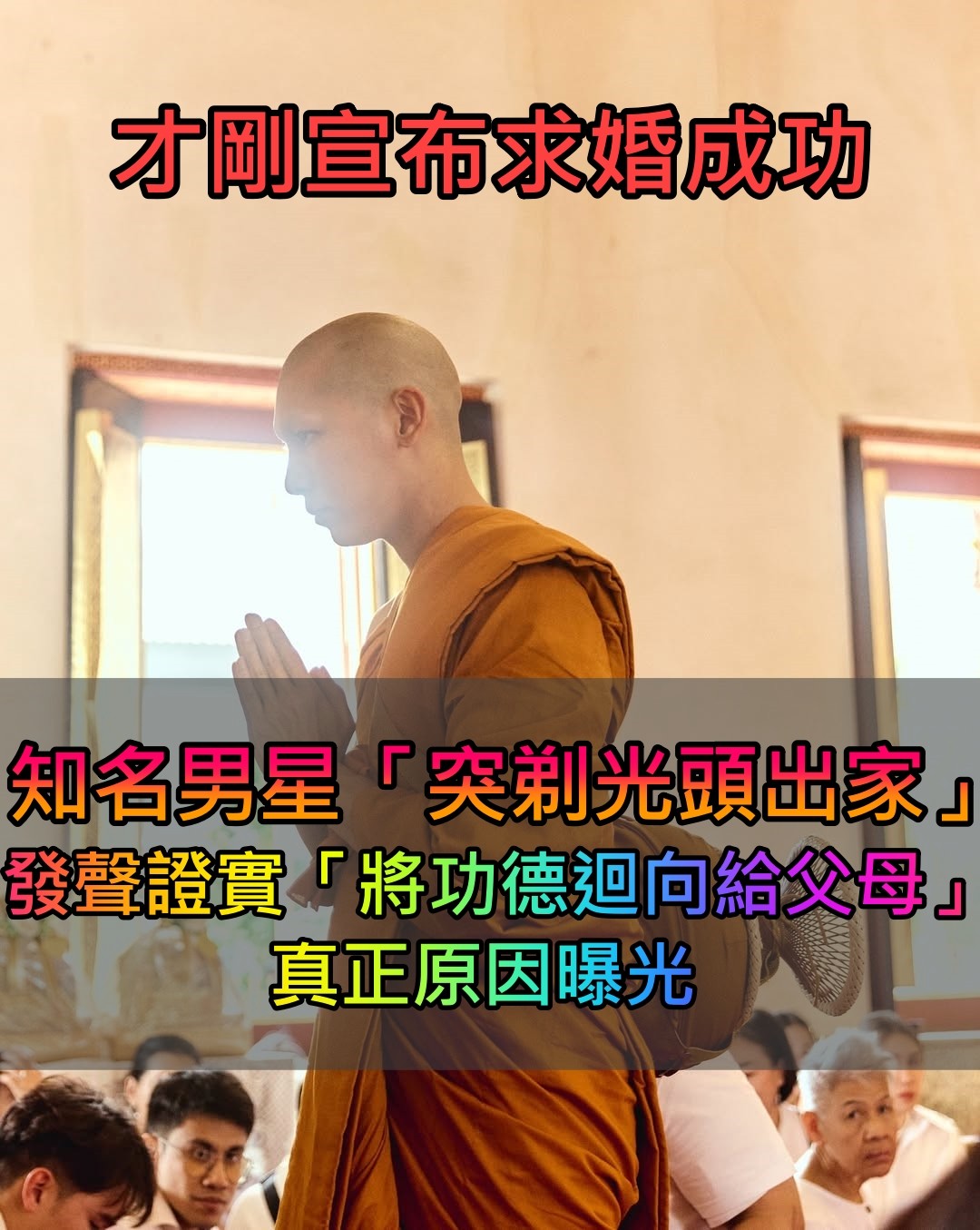 才剛求婚成功!知名男星「突宣布剃光頭出家」 虔誠雙手合十「要將功德迴向給父母」