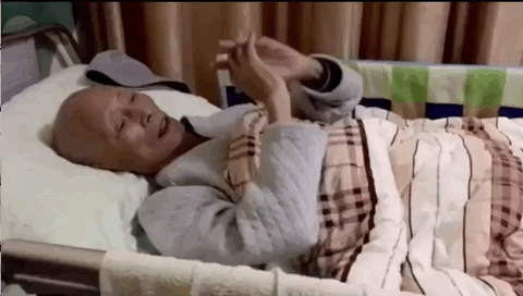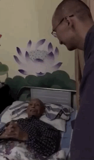 甚至卧床也不耽誤他拜佛,有時他會眼睛盯著佛像,雙手不停地合十,堅持好長一段時間,有時候則是雙腳在有規律地動作,讓人好奇這麼虛弱的老人是哪裡來的力氣。