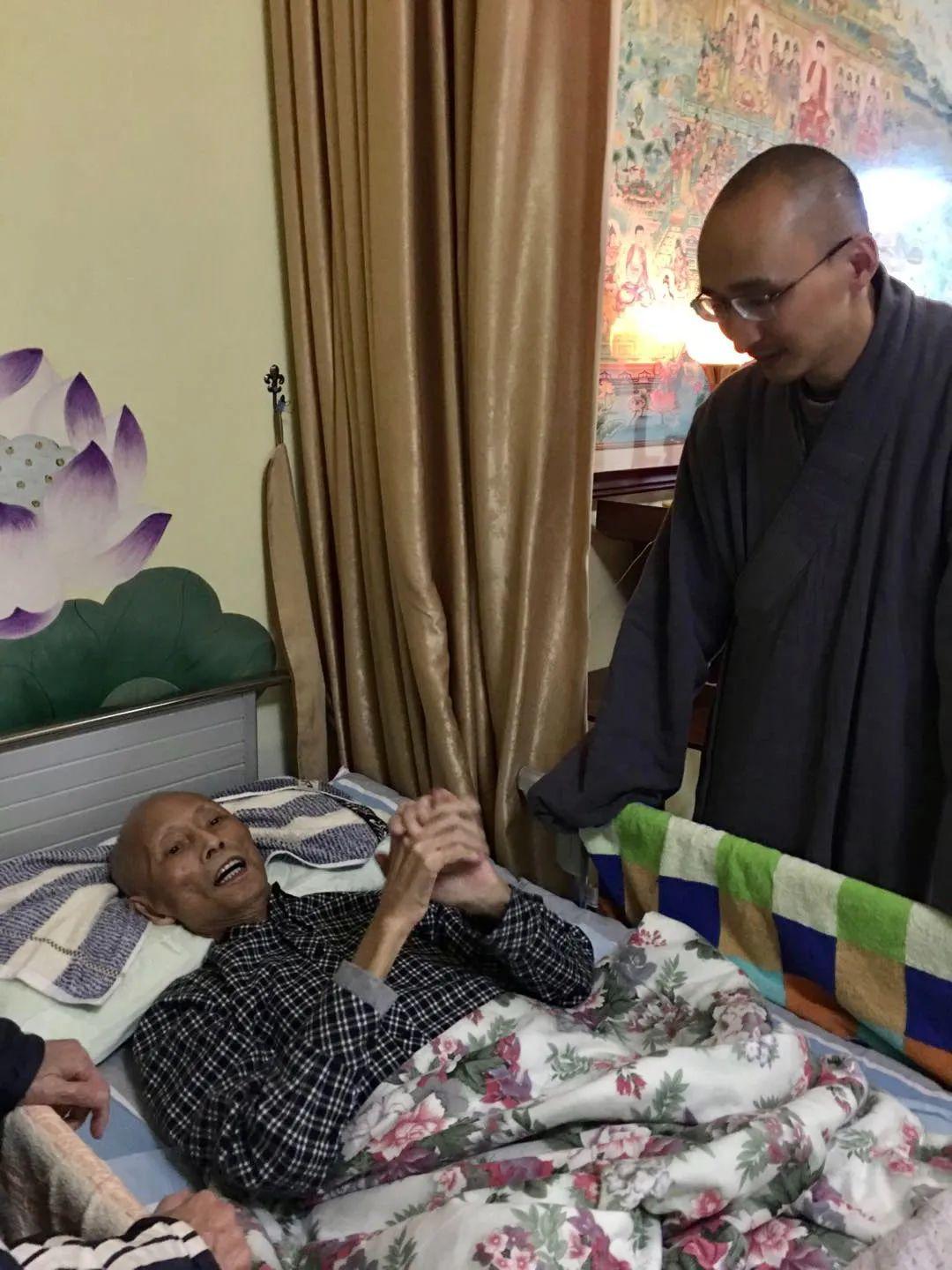 這期間,東林寺凈土苑當家師父宏凈師父和大知客慧嵐師父也多次為他開示,當時的伽陀院院長德晉師父也時常來給老菩薩問診,安撫他並鼓勵他的家人;