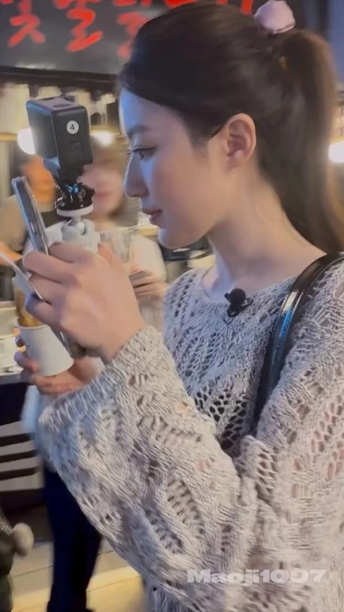 舒華在被巧遇的當時,正在與女團tripleS成員琉然錄製外景節目,而在另個畫面當中,她將秀髮綁成俐落的高馬尾,精緻五官和吹彈可破的白皙皮膚,讓在場所有人都看得目不轉睛。