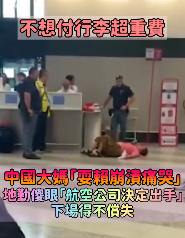 不想付行李超重費!中國大媽「躺地崩潰痛哭」大鬧機場 地勤當場傻眼「下場得不償失」
