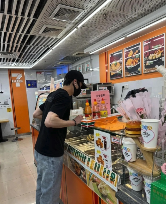 原來這名穿著黑衣、戴著黑帽黑口罩的男子就是因演出清宮劇《延禧攻略》而爆紅的許凱,出身廣東深圳的他前幾天搭機回家,而他一搭機返回深圳機場,就獨自走去超商買美食,據現場民眾透露,他買了一碗車仔麵,且走到店外的公眾座位區坐下,開始大啖美食,網友發現這已經是男神回家固定流程!