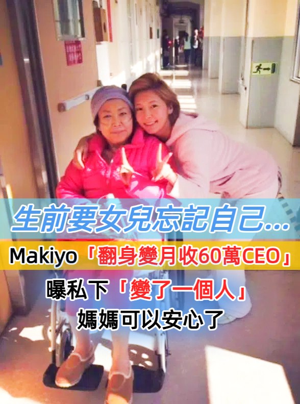 過去Makiyo曾透露,自己最窮的時候戶頭剩下2000元,現在一改過去一個月要花掉21萬的奢華生活,房租+生活費只要5萬元,加上變成月入60萬元的公司CEO,短短1年間就大翻身,也終於完成過去,會讓天上的媽媽安心的承諾。