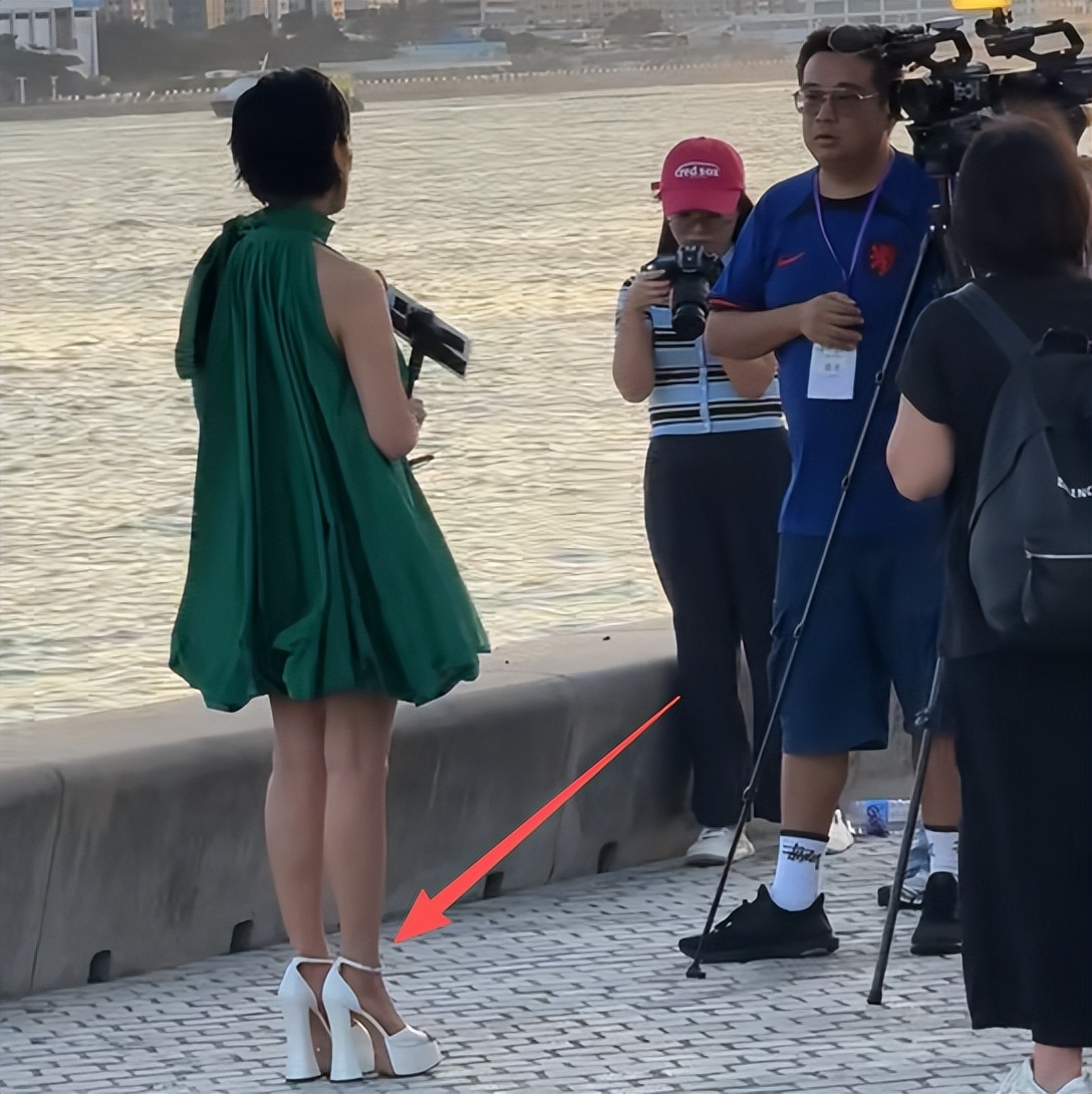 而且朱茵為了顯得高一些,腳上踩著一雙足足有二十厘米的「恨天高。」