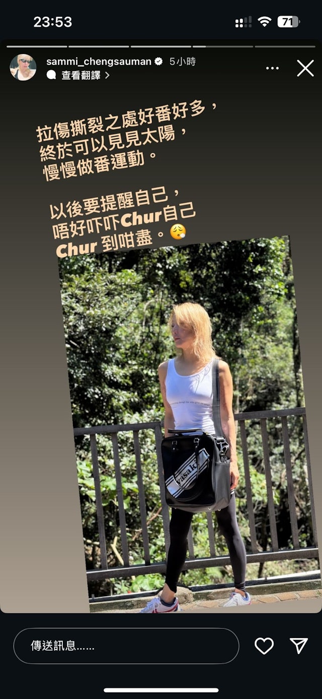 不得不說鄭秀文的身材真的像30幾歲而已!但運動健身還是要量力而為,祝天后早日康復!
