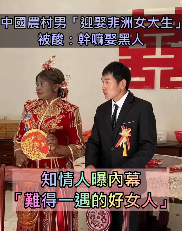 黑皮膚穿龍鳳褂!農村男子「迎娶非洲女大生」全村歡迎 浪漫異國婚姻「背後秘密曝光」網友全傻眼