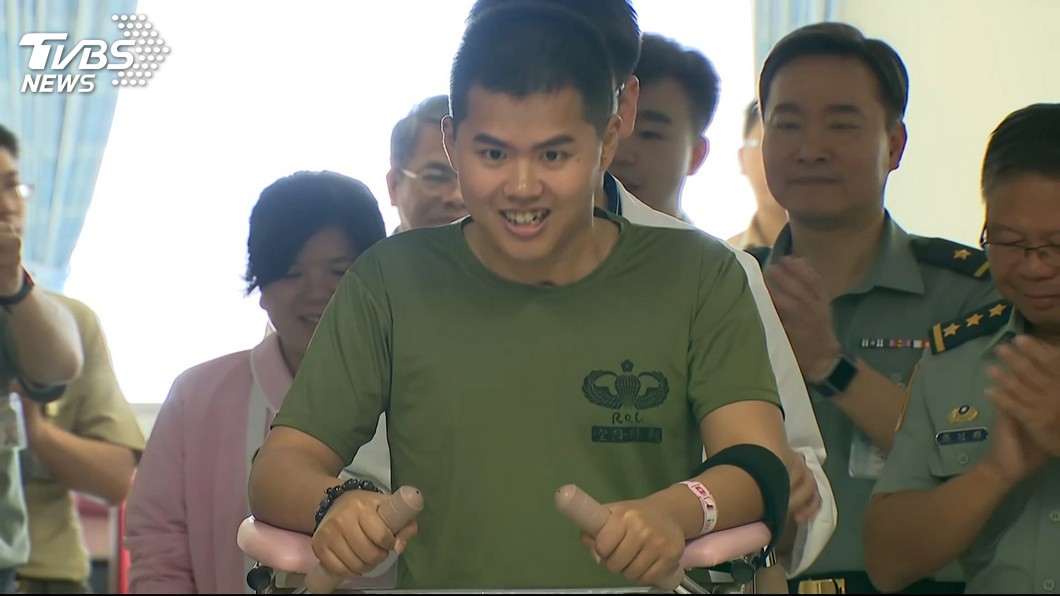 秦良丰受傷程度嚴重、部位又高,導致復健之路漫長辛苦...他的父親秦天人、常在臉書分享兒子影片,一點一滴的進步、大家都看在眼裡!七年期間,秦良丰能自行翻身、執筆寫字,甚至在旁人攙扶下爬樓梯,不靠助行器走路前行。先前,他難得更新近況,開心PO出再披軍服的模樣,開心向眾人宣布:「回到特戰部隊拿退伍令,這樣軍旅才不會有遺憾。」