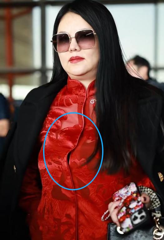 李湘這套紅色中式套裝確實很出彩,但是明顯尺碼小了,李湘衣服的扣子都快要崩開了。