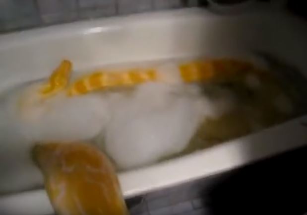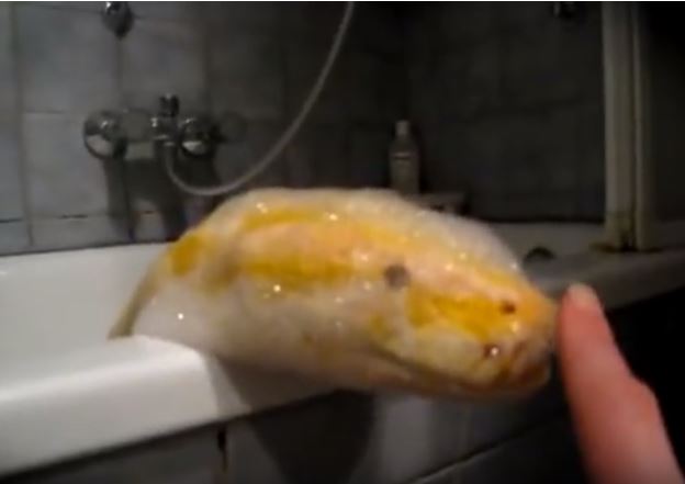 ▼黃金蟒洗澡影片。