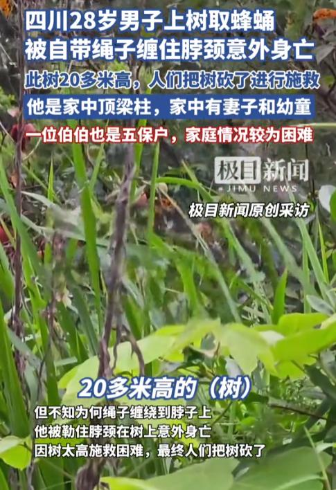 四川28歲男子上樹取蜂蛹,被自帶繩子纏住脖頸意外身亡---2025-09-23---極目新聞