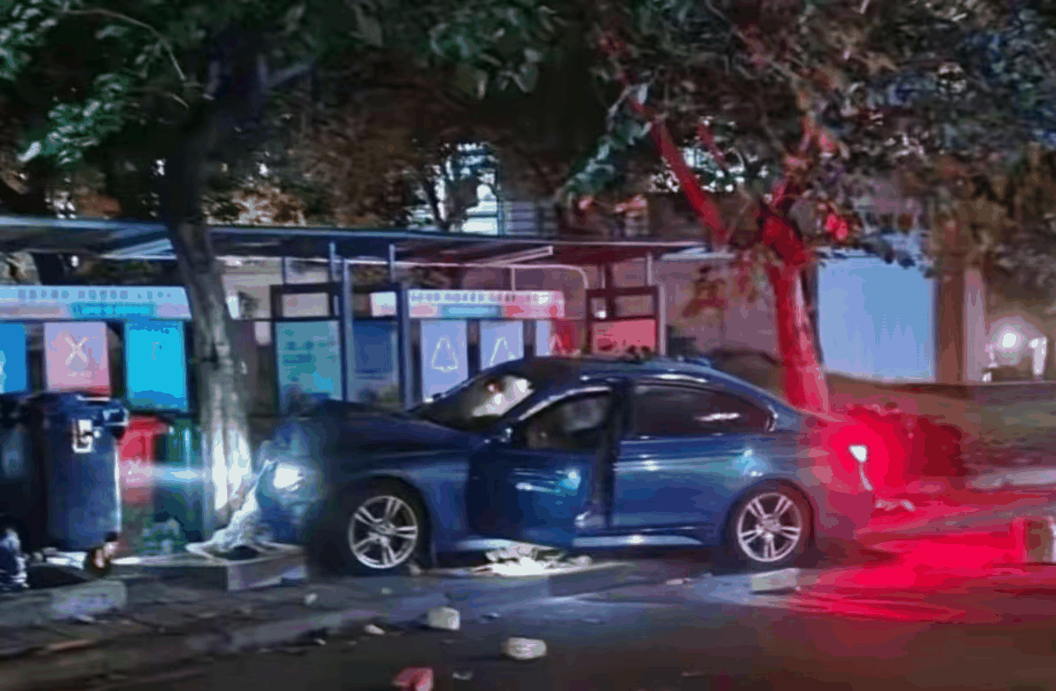 事故發生在教師宿舍和學生宿舍之間的道路上。據現場同學描述,一輛藍色BMW車與兩名學生相撞,撞擊力度之大,導致BMW車頭嚴重變形。