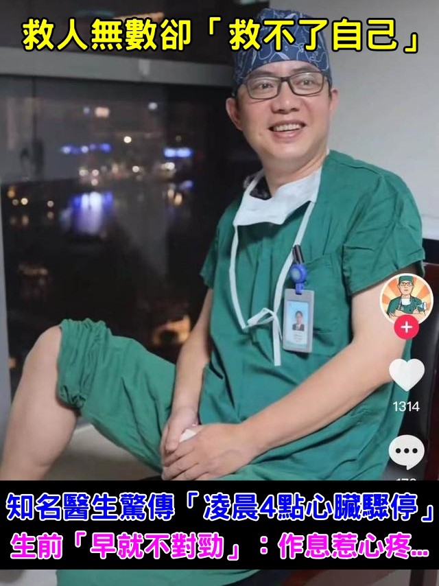 知名醫生猝逝!驚傳「凌晨4點心臟驟停」享年46歲 知情人曝「生前有些不對勁」:作息惹心疼