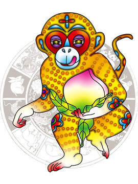 2.生肖猴:申金合巳火,靈猴摘仙桃