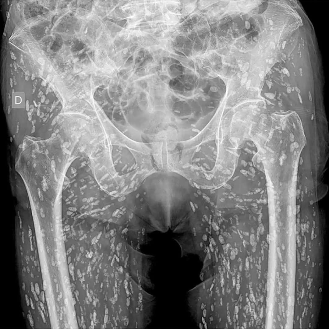 根據《Khaosod》報導,一位曾任X光助理的網友在社群平台分享,有名婦人前來照X光,當影像呈現時,從髖部到腿部竟布滿了密密麻麻的詭異陰影。放射科醫師仔細檢視後,震驚指出這些白點竟然全是寄生蟲!該患者可能因長期食用生食、生肉,不慎吞下蟲卵或幼蟲。現場醫護人員聽聞後紛紛起雞皮疙瘩,不斷以酒精消毒雙手。