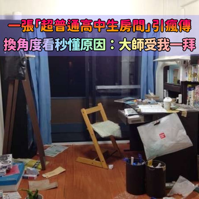 一張「超普通的高中生房間」看似平凡髒亂 他「歪頭換個角度看」下跪:大師我錯了