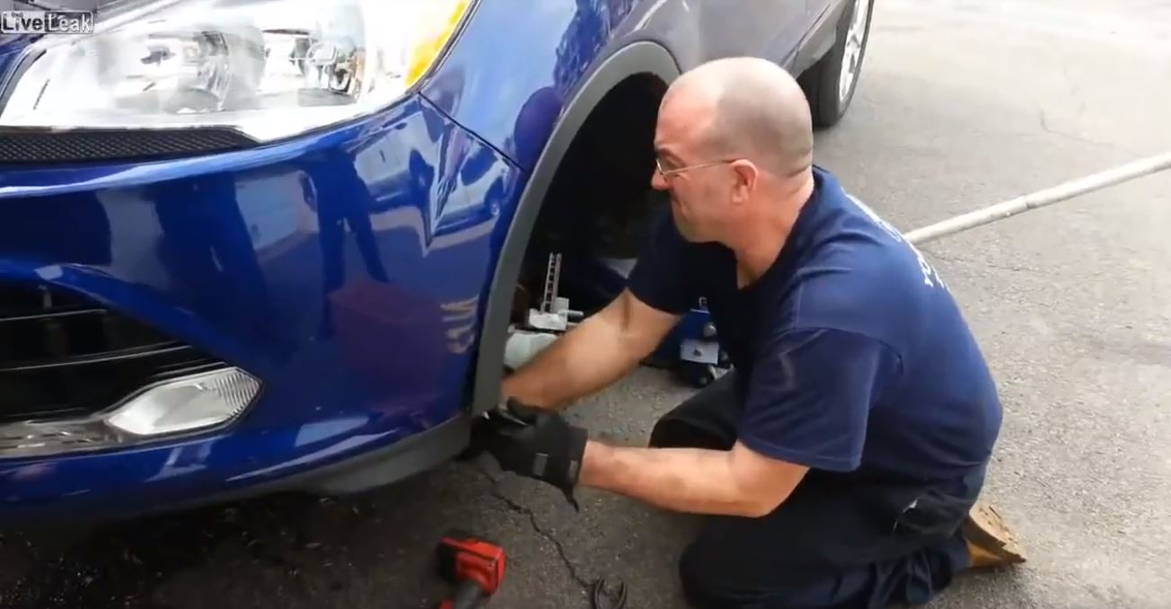 這位車主才剛買一輛藍色轎車沒多久,結果才開沒幾次而已,就發現車子輪胎好像有點不太對勁,仔細一看才發現,裡頭居然出現了好幾隻松鼠阿!