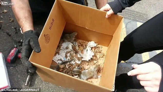 但最後他們只挖出了3隻小松鼠,並沒有看到松鼠媽媽的身影,有可能是因為被嚇到,所以已經跑走了。