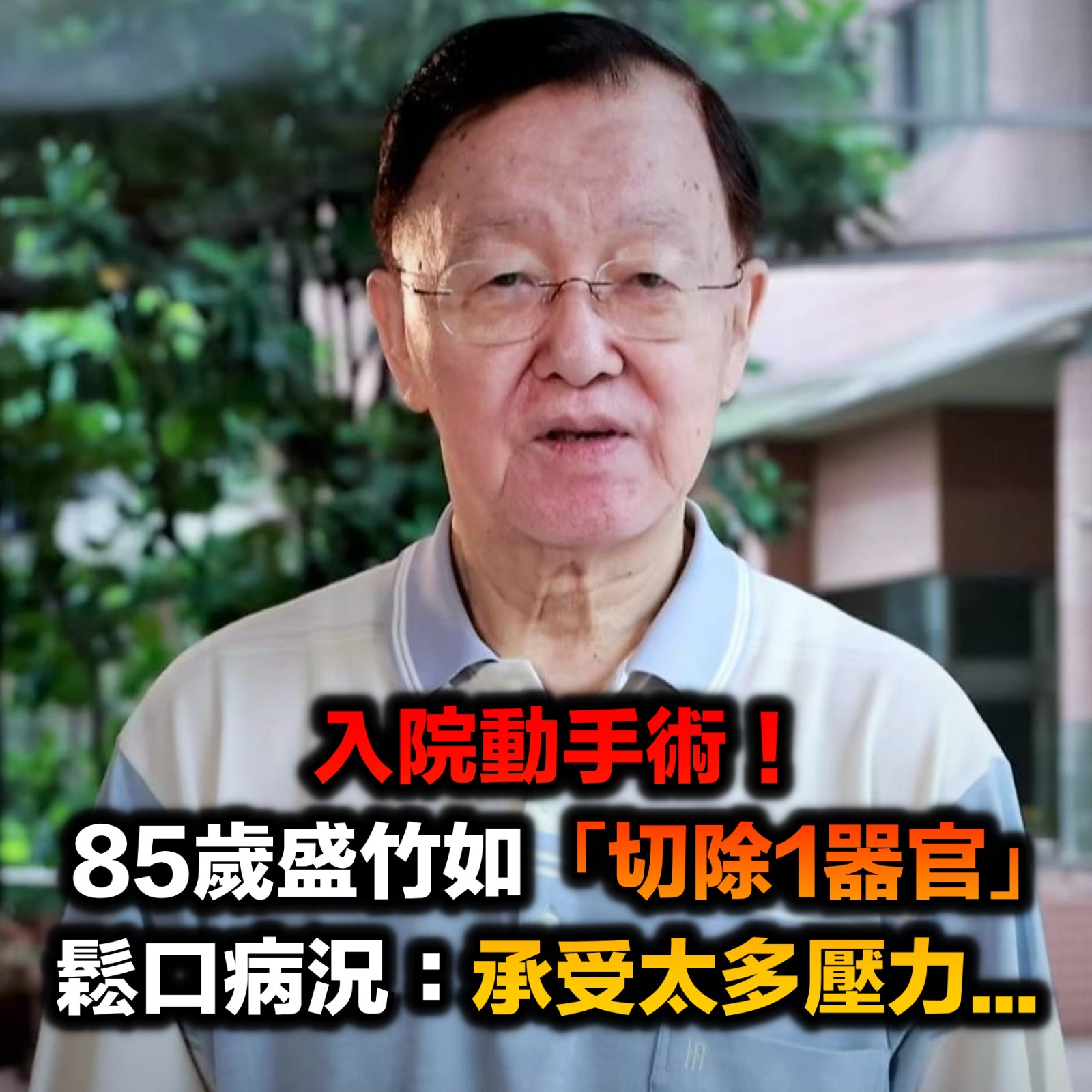 突爆入院手術!盛竹如「切除1器官」苦嘆:受了極大壓力 85歲「現況曝光」