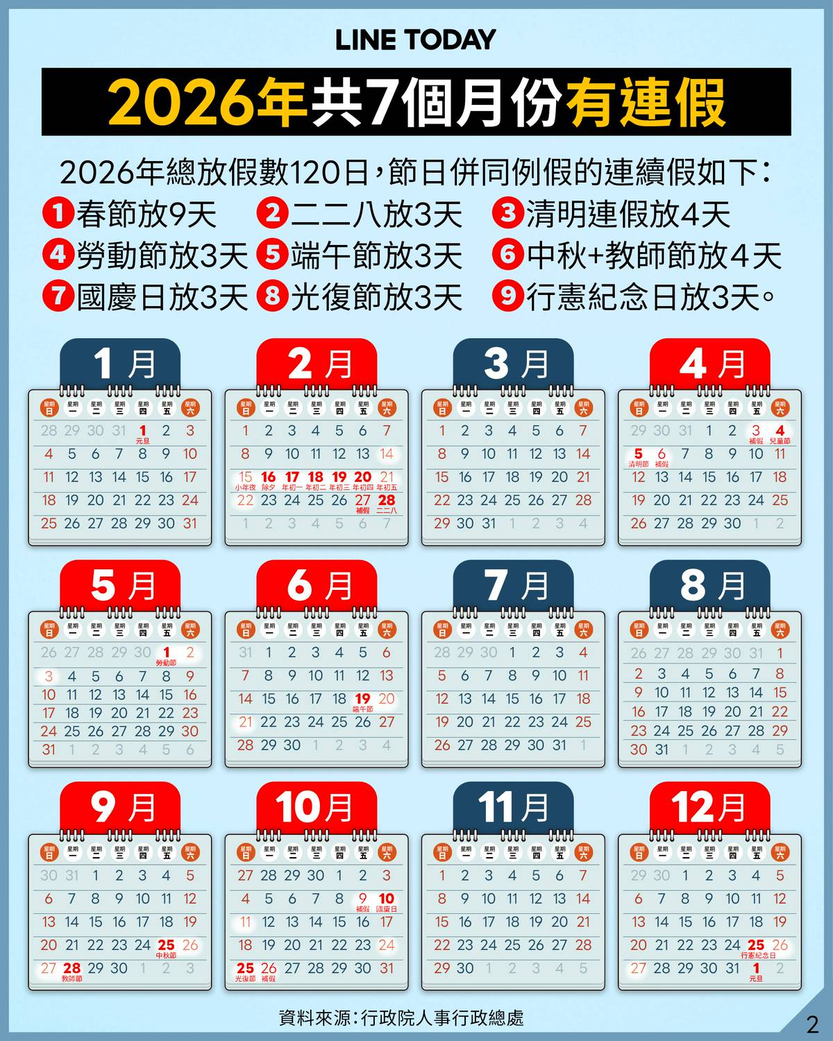 根據《ETtoday新聞雲》報導,一名企業主在社群平台Threads上發文抱怨,2026年的連假實在太誇張,從春節到年底的行憲紀念日,總共有9個連假,而且完全沒有補班日,讓他看到行事曆就差點暈倒。這位老闆特別提到,春節連假從2月14日開始放到2月22日,緊接著的228連假從2月27日到3月1日,若員工在中間請假4天,就能一口氣休息16天。