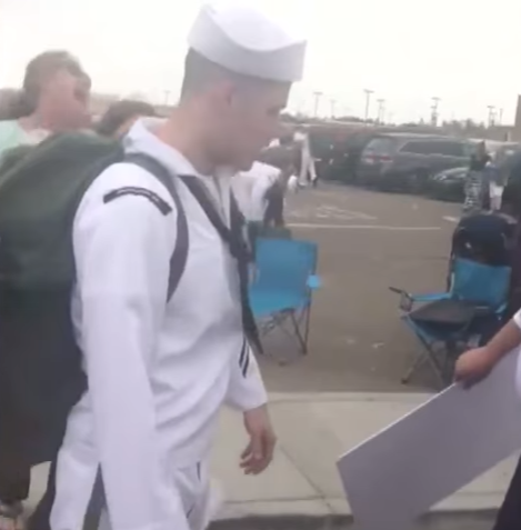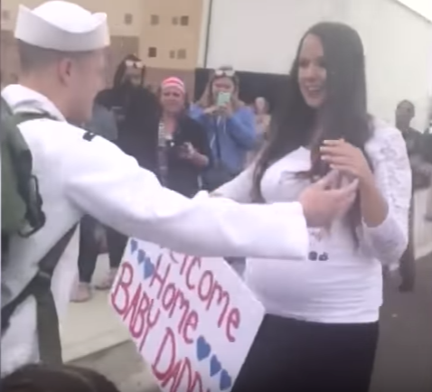 海軍老公「為國出征半年」終於回家!老婆迎接一拿開牌子「露出大肚子」他臉當場垮掉